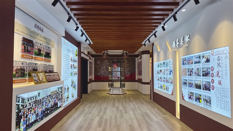 紅領巾講解員楚成白姆指著老照片介紹道:“這是學生當時加入少先隊時的情景,這是學校成立時的教室畫面,這張是建校初期教師自編的教材圖片。”在上世紀七八十年代,學校組織學生成立了腰鼓隊、舞蹈隊等,學生們經常登上大型活動的舞臺,用精彩的文藝表演展現(xiàn)著青春風采。