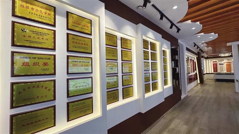 在校史館的圖片墻上,學校舉行“六一”文藝演出的照片吸引了記者的注意。從1985年羅布林卡黑白照片里孩子們歡快表演的身影,到上世紀90年代初宗角祿康公園彩色照片中孩子們慶?!傲弧眹H兒童節(jié)的文藝表演,再到1992年至2012年間,學校舉辦慶?!傲弧眹H兒童節(jié)文藝演出。20年間,學校進一步豐富特色教育,設有管樂隊、民樂特長班、手工特長班、美術特長班等,并組織管樂隊學生在布達拉宮廣場參加各類活動,為學生全面發(fā)展搭建起更廣闊的展示平臺。