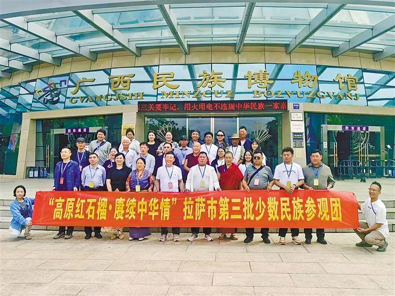 近期,拉薩市著力創(chuàng)建全國民族團(tuán)結(jié)進(jìn)步模范區(qū)專項(xiàng)辦、市委統(tǒng)戰(zhàn)部、市民委組織開展拉薩市第三批“高原紅石榴·賡續(xù)中華情”少數(shù)民族參觀團(tuán)(以下簡(jiǎn)稱參觀團(tuán))赴廣西壯族自治區(qū)、云南省考察學(xué)習(xí)。參觀團(tuán)先后考察了廣西民族博物館、南寧市武鳴區(qū)五彩壯鄉(xiāng)非遺傳承基地等24個(gè)點(diǎn)位,深入了解南寧、大理等4個(gè)市(州)民族團(tuán)結(jié)進(jìn)步創(chuàng)建工作中的好經(jīng)驗(yàn)好做法。