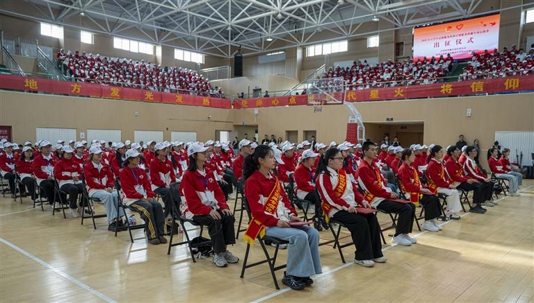 在激昂的音樂聲中,授旗環(huán)節(jié)莊嚴(yán)進(jìn)行。接過出征旗后,志愿者們高舉右拳,集體莊嚴(yán)宣誓:“我志愿成為一名光榮的志愿者……”堅(jiān)定的誓言在會場回蕩,他們發(fā)出了“青春為中國式現(xiàn)代化挺膺擔(dān)當(dāng)”的錚錚誓言,展現(xiàn)出奉獻(xiàn)西部的決心與信念。