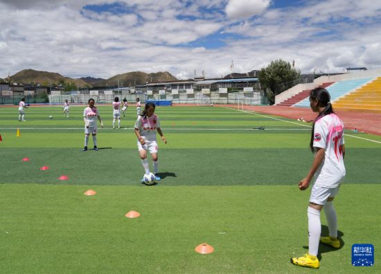 在西藏日喀則市上海實(shí)驗(yàn)學(xué)校,“珠峰雪鷹”女子足球隊(duì)隊(duì)員們?cè)诓賵?chǎng)上訓(xùn)練(9月3日攝)。新華社記者 丁汀 攝