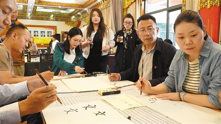 近日,拉薩市城關(guān)區(qū)扎細(xì)街道扎細(xì)新村社區(qū)黨總支聯(lián)合國(guó)網(wǎng)西藏超高壓分公司開(kāi)展“墨韻連心 共書(shū)民族團(tuán)結(jié)光明路”藏漢書(shū)法交流體驗(yàn)活動(dòng)。