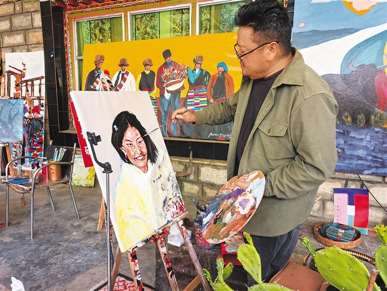 在絕望的深淵里,這片土地深沉的力量和藝術(shù)創(chuàng)作的本能召喚,讓他抓住了救贖的繩索。他用了漫長光陰,艱難地完成了這場精神的浴火涅槃:重新拾起寫詩的筆,鋪開作畫的紙,用文字和色彩,一步一個腳印地跋涉,終于走出了那場“淋了10多年的大雨”。他決然放下沉重的過往,以“白瑪次仁”之名擁抱新生,將一路的風霜、藏地的壯美與故事,化作筆下的詩行與畫布上的色彩,在藝術(shù)的熔爐中淬煉出一個全新的自我。