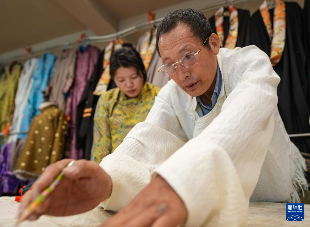在拉薩雪堆白傳統(tǒng)手工藝術學校,60歲的西藏自治區(qū)級非物質文化遺產項目藏族服飾(拉薩服飾)代表性傳承人洛桑麥朗,與學徒一道研究、制作藏裝。從藝四十余載,他培養(yǎng)了百余名弟子,還參與編撰教材、建立藏族服飾數據庫等工作。在他的巧手下,新式藏裝將傳統(tǒng)與現代交融,讓非遺技藝與現代審美碰撞,成為街頭一道靚麗的風景?! ??