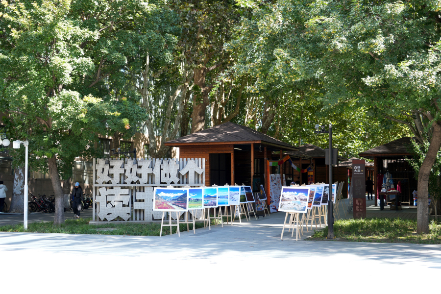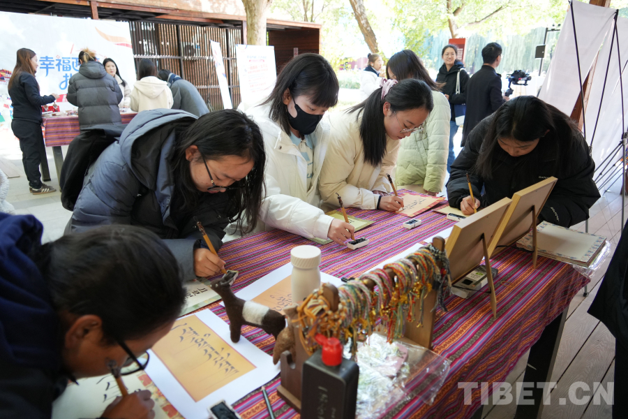 金秋正午,中國傳媒大學(xué)圖書館門口的白楊大集分外熱鬧。上午課結(jié)束后同學(xué)們紛紛走進(jìn)文化市集,通過學(xué)寫藏文、繪制唐卡、制作藏式印章、有獎知識互動等活動,以青春視角與西藏文化進(jìn)行一場近距離的互動交流,探索與感受民族文化的魅力。