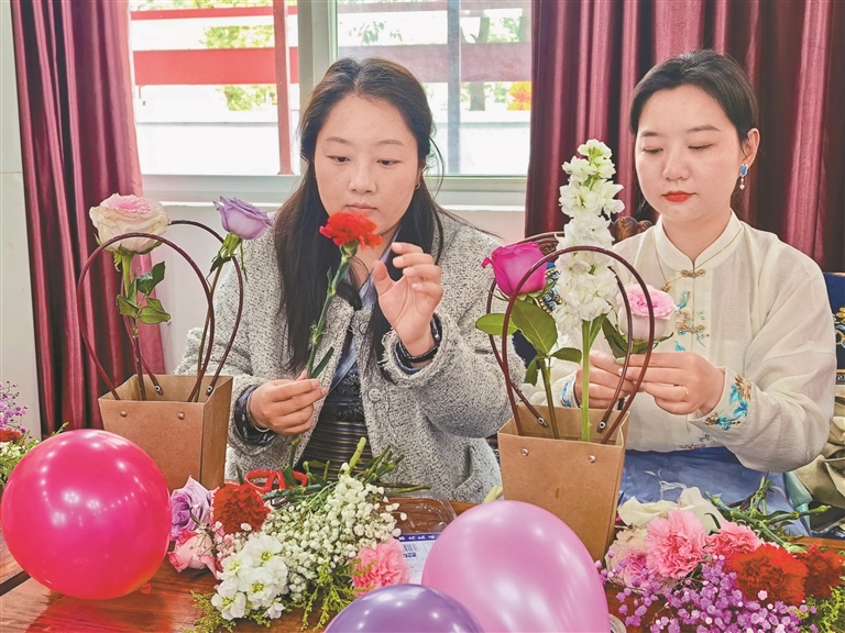 活動現(xiàn)場花香四溢、暖意融融?;ㄋ嚴蠋焽@花材識別、修剪技巧、色彩搭配等進行細致講解與示范,手把手指導大家選材、剪枝、定形、點綴。大家在花香中舒緩壓力、陶冶情操,在互動中增進情誼、凝聚共識,充分展現(xiàn)了新時代女性自信優(yōu)雅、積極向上的精神風貌。