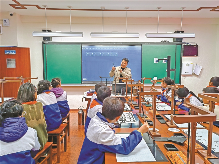 他的教學(xué)足跡遠(yuǎn)不止于校園。2019年起,西藏自治區(qū)書法美術(shù)培訓(xùn)中心與拉薩市少年宮建立戰(zhàn)略合作,他長期在此擔(dān)任漢文書法培訓(xùn)負(fù)責(zé)人與專職書法教師。
