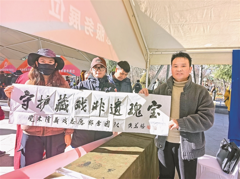 圖為侯華勝為覺木隆藏戲志愿者團(tuán)隊(duì)贈送書法作品。