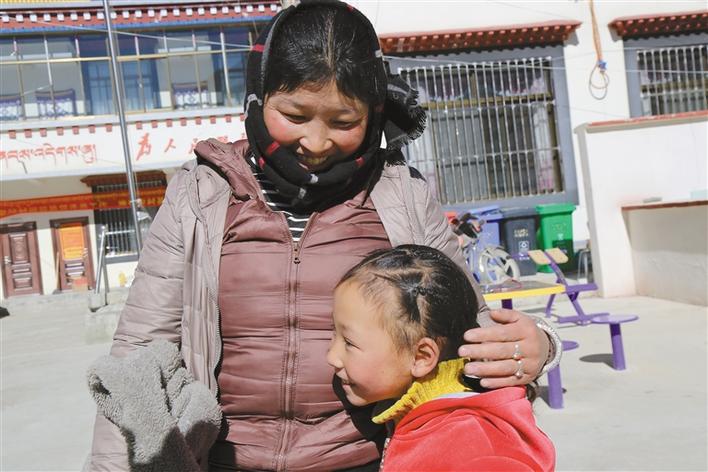 剛拆完石膏的髖關(guān)節(jié)脫位患兒索朗卓嘎高興地依偎在母親懷里。記者 黃志武 攝