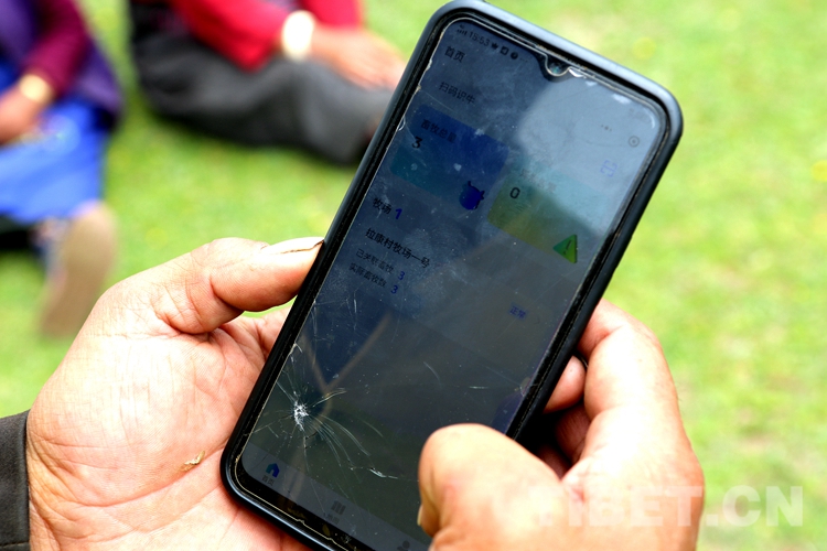 圖為牧民群眾使用手機(jī)便可知悉自家牦牛動態(tài) 攝影:王佳豪