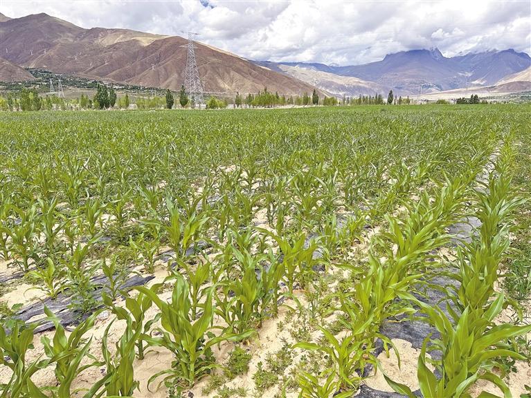 “茶巴拉村是一個(gè)以農(nóng)業(yè)為主的村莊,全村共有耕地面積5300余畝,常住人口1300人左右,勞動(dòng)力870人?!辈璋屠l(xiāng)茶巴拉村黨委第一書記丁增格來(lái)說(shuō)。為了增加村集體經(jīng)濟(jì)收入,今年3月,在曲水縣牽線搭橋下,茶巴拉村村委會(huì)與西藏空港實(shí)業(yè)有限公司簽訂了開(kāi)墾茶巴拉村沿雅魯藏布江沿岸1500畝荒地的合作協(xié)議,共同成立了西藏曲水藏禾農(nóng)業(yè)綜合開(kāi)發(fā)有限公司。前期開(kāi)荒出的850多畝土地上種植了玉米。