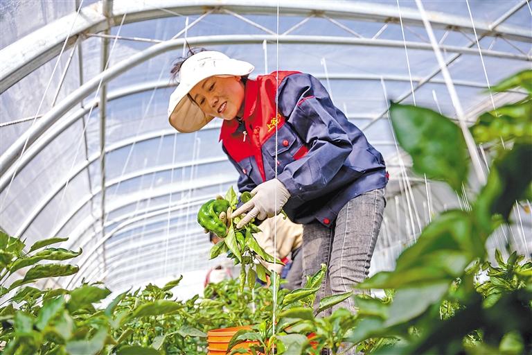 拉薩冬意漸濃,園區(qū)連片的溫室大棚,在冬日暖陽下熠熠生輝,宛如一個個孕育希望的“菜籃子”,豐富冬日市場供應。走進蔬菜大棚,棚內(nèi)暖意融融、綠意盎然,黃瓜、西紅柿、青椒等各類蔬菜均已進入成熟期,長勢十分喜人。眼下,正是大棚青椒采摘期,一壟壟、一株株青椒掛滿枝頭,工作人員三五成群忙著采摘,現(xiàn)場一派繁忙景象?!安烧嘟芬蛏险?,這樣才不會損傷植株。”在旦增曲扎的指導下,工作人員很快完成了采摘工作,打包、稱重后,37袋青椒被整齊地擺放在一起,等待著裝車發(fā)貨。