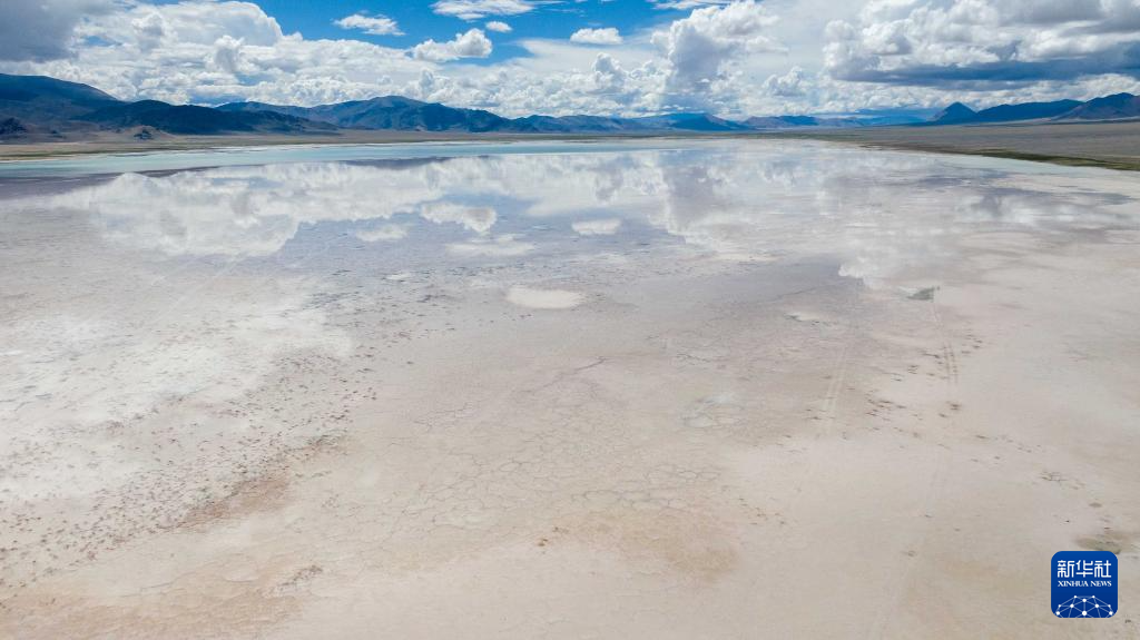 7月20日拍攝的位于西藏阿里地區(qū)革吉縣的鹽湖一景(無人機照片)。新華社記者 旦增尼瑪曲珠 攝