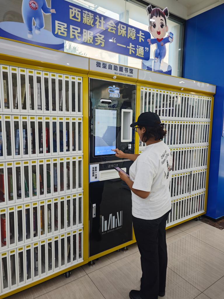 市民在中國建設銀行拉薩城西支行使用社??ń栝唸D書。(受訪者供圖)