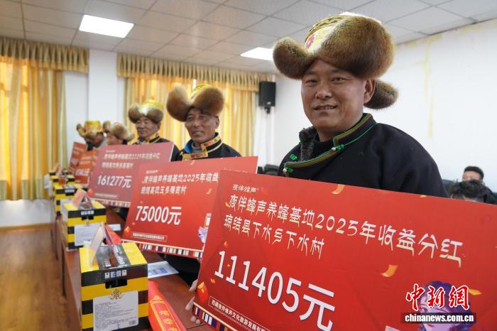 瓊結縣拉玉鄉(xiāng)強吉村黨總支書記、村委會主任赤列旺久反復數(shù)著一疊又一疊的現(xiàn)金說:“今年分紅75000元。相較于出遠門打工掙錢,在家門口養(yǎng)蜂更踏實,收益更好。”