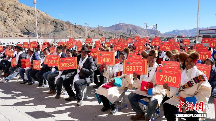 圖為聯(lián)合社員工身著盛裝參加分紅活動。普布 攝