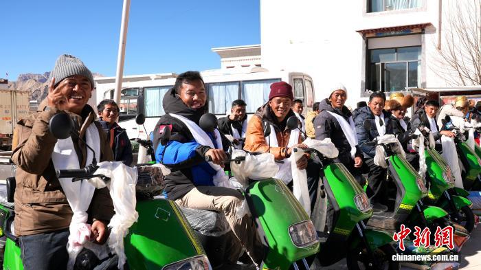 圖為聯(lián)合社員工獲贈兩輪電動車。普布 攝