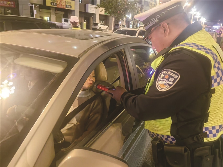 “您好,請吹氣?!薄爸x謝您的配合,祝您一路平安?!毙袆又校瑘?zhí)勤民警采取“定點檢查+流動巡邏”相結(jié)合方式,對過往車輛“逢車必查、逢疑必檢、有違必究”,對過往車輛進行逐一檢查,嚴查超員、超速、無證駕駛、不系安全帶、不戴頭盔等交通違法行為,堅決做到發(fā)現(xiàn)一起,嚴處一起,全力營造嚴防、嚴控、嚴懲的高壓整治態(tài)勢,有力震懾各類交通違法行為,全力遏制重特大道路交通事故的發(fā)生,引導群眾自覺遵守交規(guī),文明出行。同時,民警還積極向廣大駕駛員宣傳交通安全知識,引導教育廣大駕駛員養(yǎng)成“開車不喝酒,喝酒不開車”的良好習慣,營造共同遵守交通法律法規(guī)、安全文明出行的濃厚氛圍。