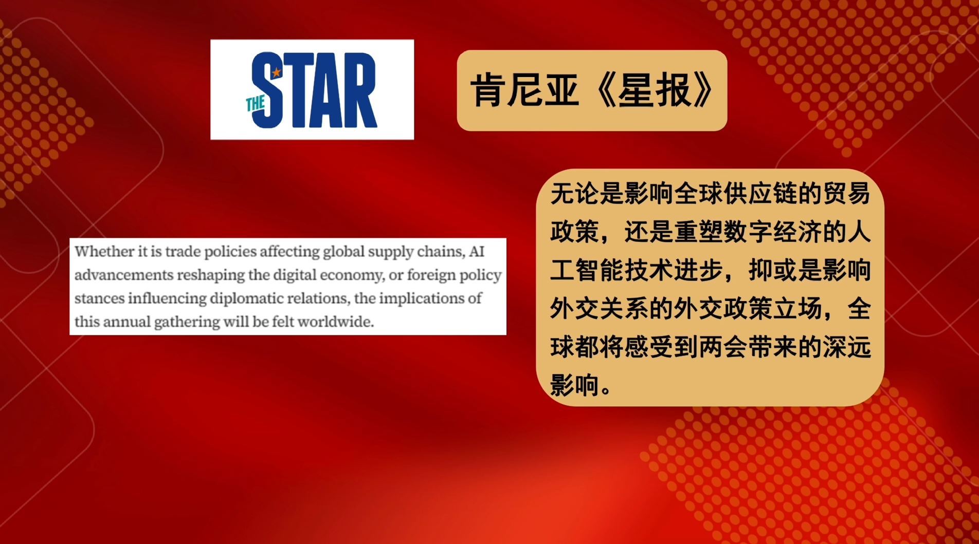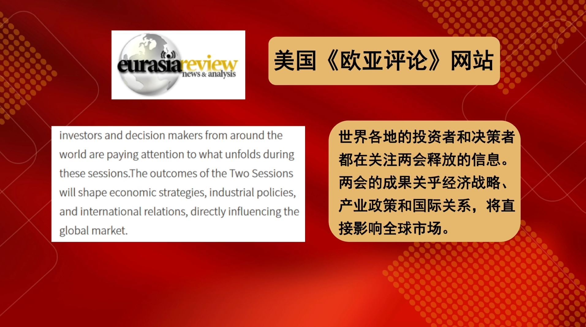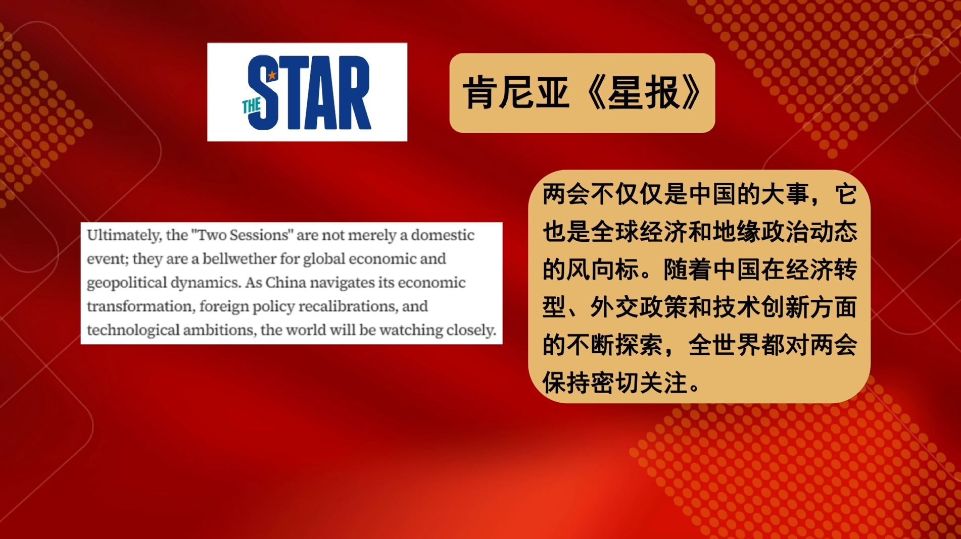 多家外國媒體紛紛用“全球性的重要意義”“直接影響全球市場”“全球的風向標”“全球感受到兩會的深遠影響”這些描述,對中國兩會對世界的重要性給予高度肯定。