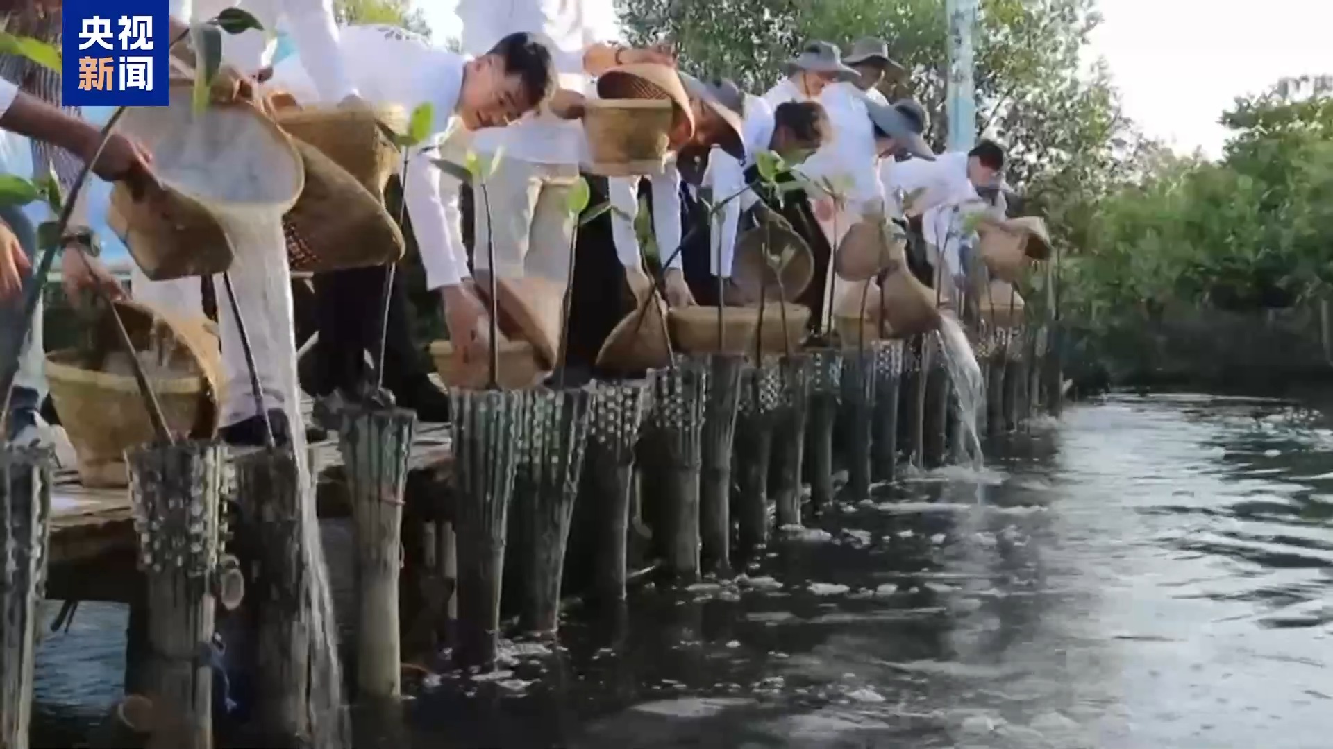 就在記者探訪的當(dāng)天,又一批紅樹苗被種入沿海灘涂。這樣的生態(tài)投入也帶來了民生收益,周邊居民有了新的就業(yè)機會,漁業(yè)資源也逐漸恢復(fù),越來越多珍稀野生動物在此安家。