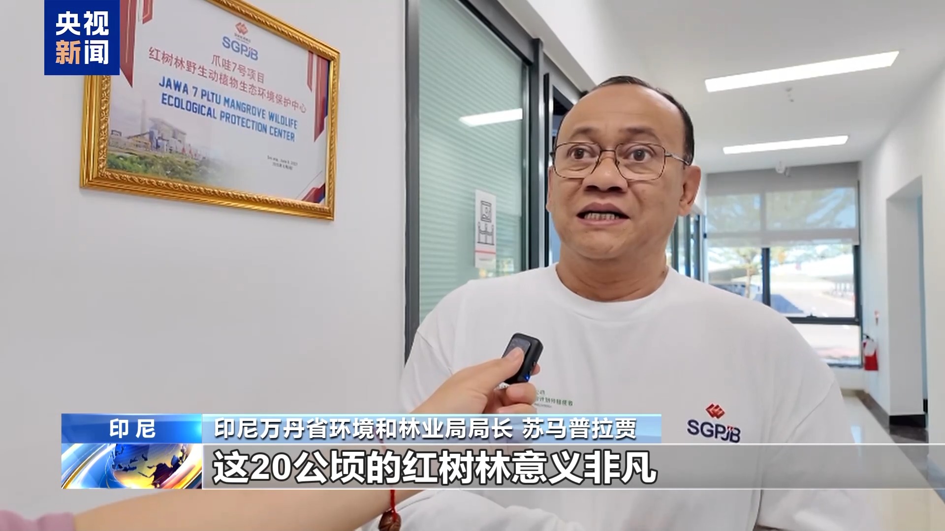 總臺記者 李琳:我現(xiàn)在所在的位置是印尼(單機容量)最大的火力發(fā)電廠。我現(xiàn)在所在的這個平臺有80米高。從我身后大家可以看到一大片紅樹林和電廠是和諧共生。那么在最開始,這片紅樹林只有5公頃的面積,而隨著企業(yè)不斷地種植,現(xiàn)在已經(jīng)達(dá)到了20公頃。