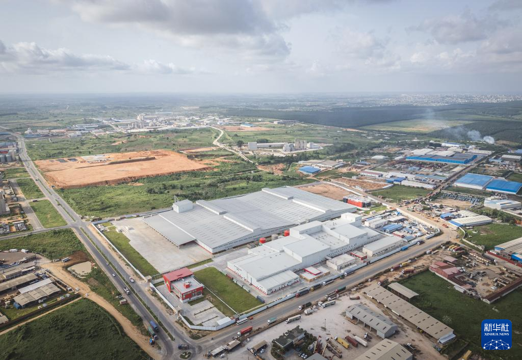 這是5月27日在科特迪瓦阿比讓西北部PK24工業(yè)園拍攝的阿比讓可可加工廠(無(wú)人機(jī)照片)。新華社記者 王冠森 攝
