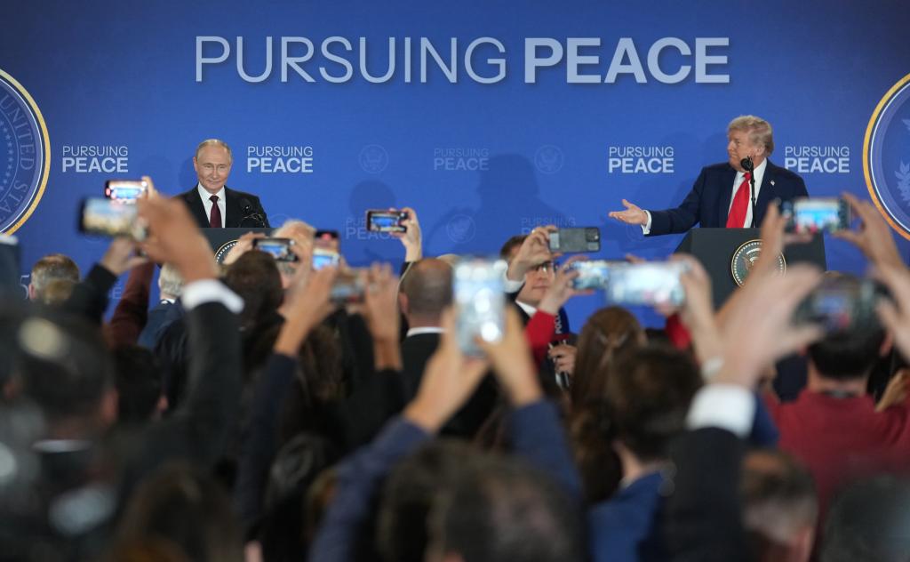 8月15日,美國總統(tǒng)特朗普(右)與俄羅斯總統(tǒng)普京在美國阿拉斯加州安克雷奇市埃爾門多夫-理查森聯(lián)合軍事基地舉行會(huì)晤后共同出席聯(lián)合記者會(huì)。新華社記者吳曉凌攝