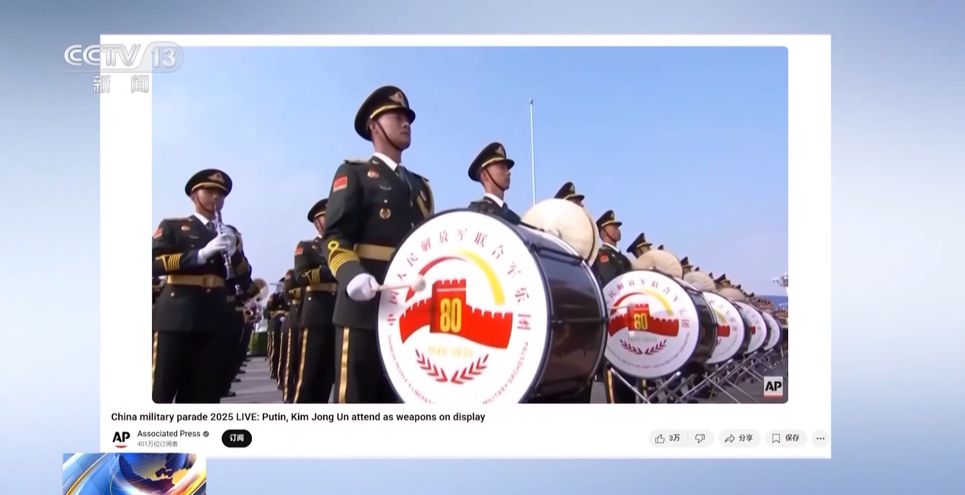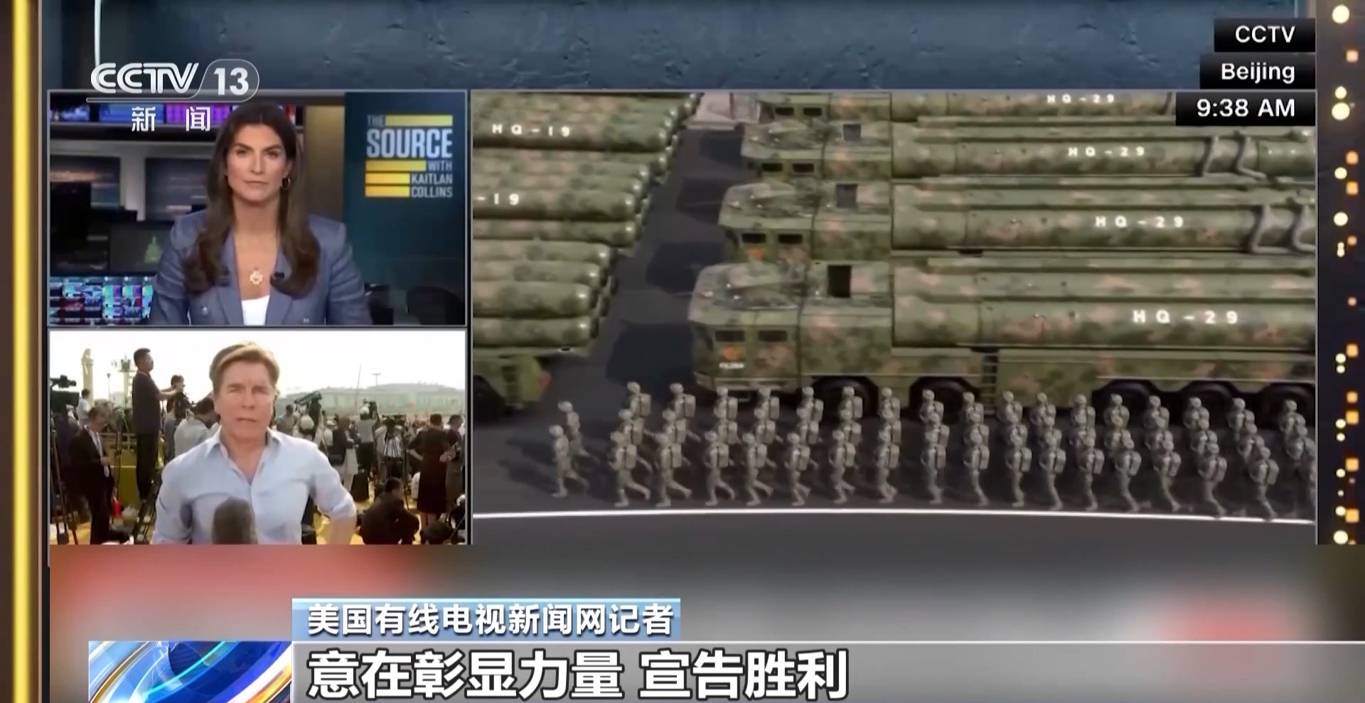 美國(guó)有線電視新聞網(wǎng)(CNN)通過(guò)現(xiàn)場(chǎng)記者和總臺(tái)的直播信號(hào)幾乎全程關(guān)注了抗戰(zhàn)勝利80周年紀(jì)念大會(huì)。美國(guó)廣播公司(ABC)、美國(guó)全國(guó)廣播公司(NBC)、美聯(lián)社等多家媒體和通訊社也對(duì)此進(jìn)行了轉(zhuǎn)播和報(bào)道。