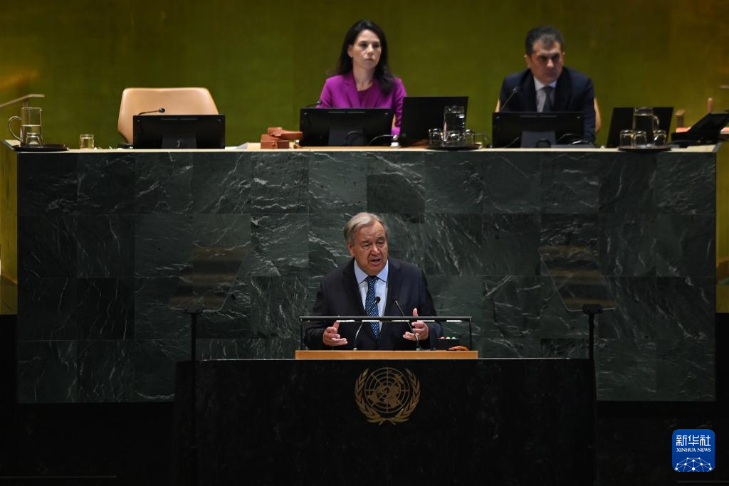 9月23日,在位于紐約的聯(lián)合國總部,聯(lián)合國秘書長古特雷斯在第80屆聯(lián)合國大會(huì)一般性辯論開幕式上致辭。新華社記者李睿攝
