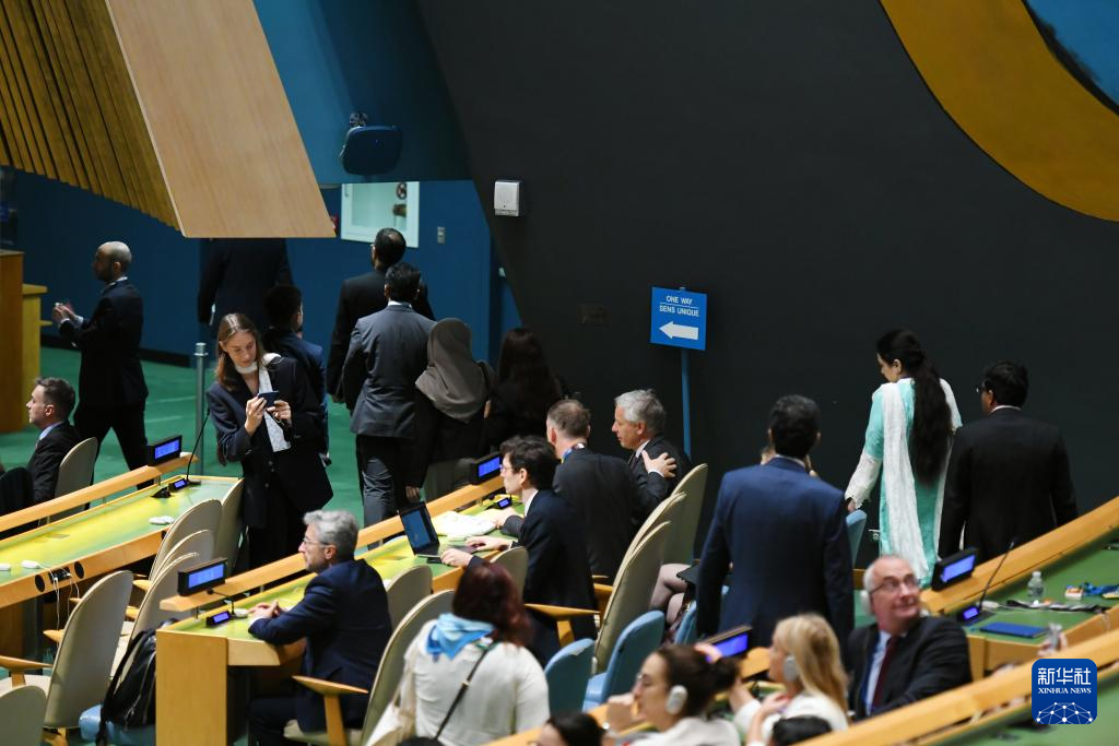 9月26日,在位于紐約的聯(lián)合國總部,眾多代表退場抗議。新華社記者李睿攝