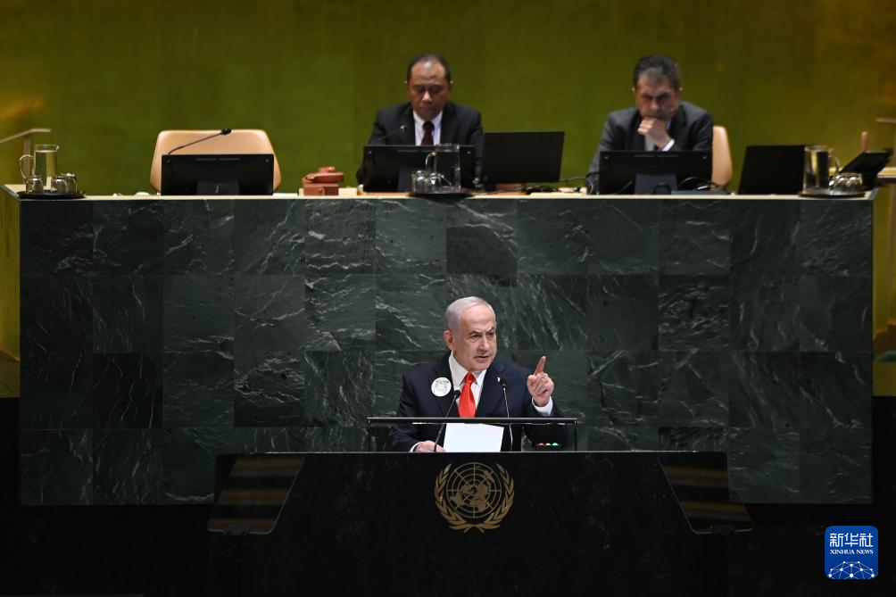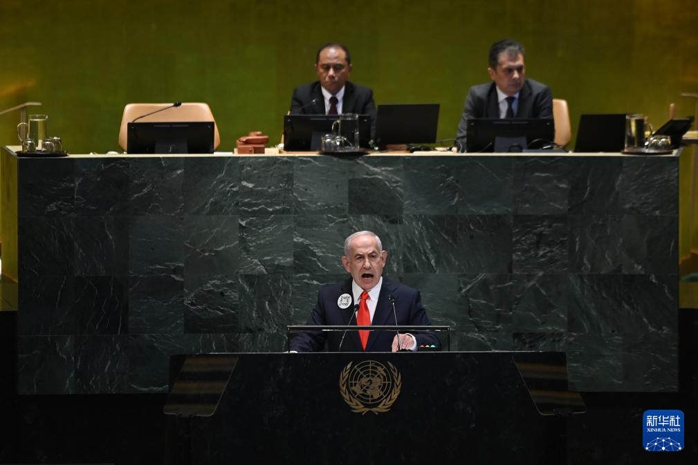 以色列總理內(nèi)塔尼亞胡26日在聯(lián)合國大會一般性辯論發(fā)言,為以色列在加沙地帶以及中東多國的軍事行動辯解,稱反對巴勒斯坦建國不僅是他本人及其領導執(zhí)政聯(lián)盟的政策,也是以色列的“國策”。