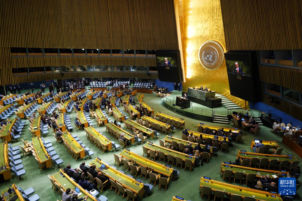 當日,以色列總理內(nèi)塔尼亞胡在第80屆聯(lián)合國大會一般性辯論發(fā)言。眾多聯(lián)合國會員國代表起身離席,退場抗議。新華社記者吳曉凌攝