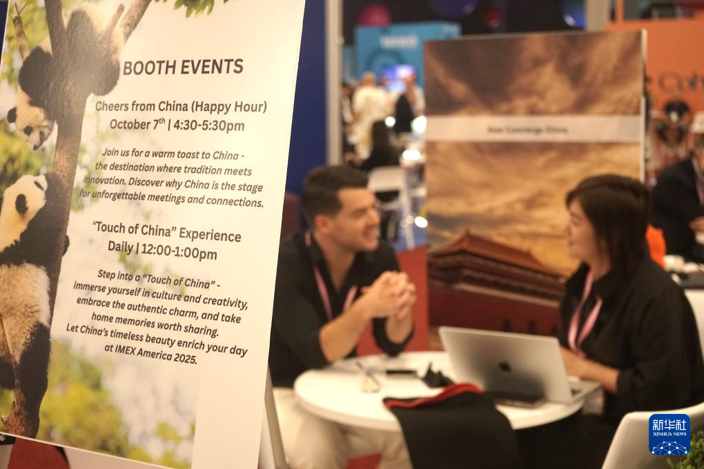 10月8日,在美國(guó)拉斯維加斯,人們?cè)?025年美國(guó)國(guó)際會(huì)議與獎(jiǎng)勵(lì)旅游展的中國(guó)展區(qū)參觀。 新華社發(fā)(曾慧攝)