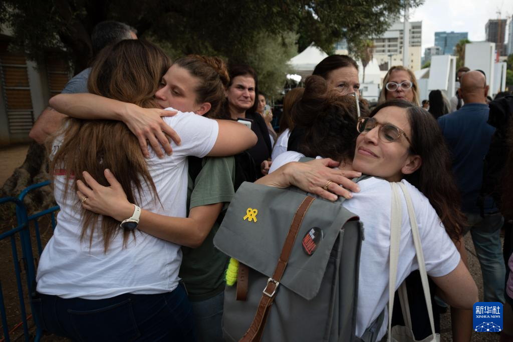 當9日加沙?;鸬谝浑A段協(xié)議達成的消息傳來,在以色列國防部大樓對面的廣場上,被扣押人員馬坦的母親艾納夫與周圍的人相擁而泣。她高喊:“從現(xiàn)在起,這里叫希望廣場!”