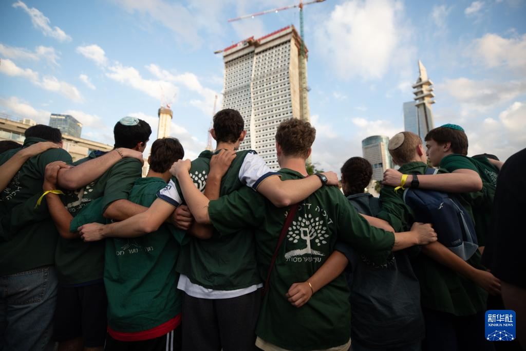10月9日,在以色列特拉維夫,人們獲悉加沙?;饏f(xié)議的消息后相互慶祝,期待被扣押的人員早日獲釋。新華社記者 陳君清 攝