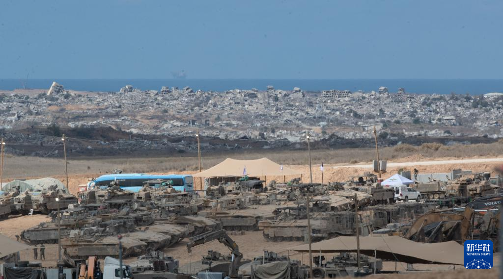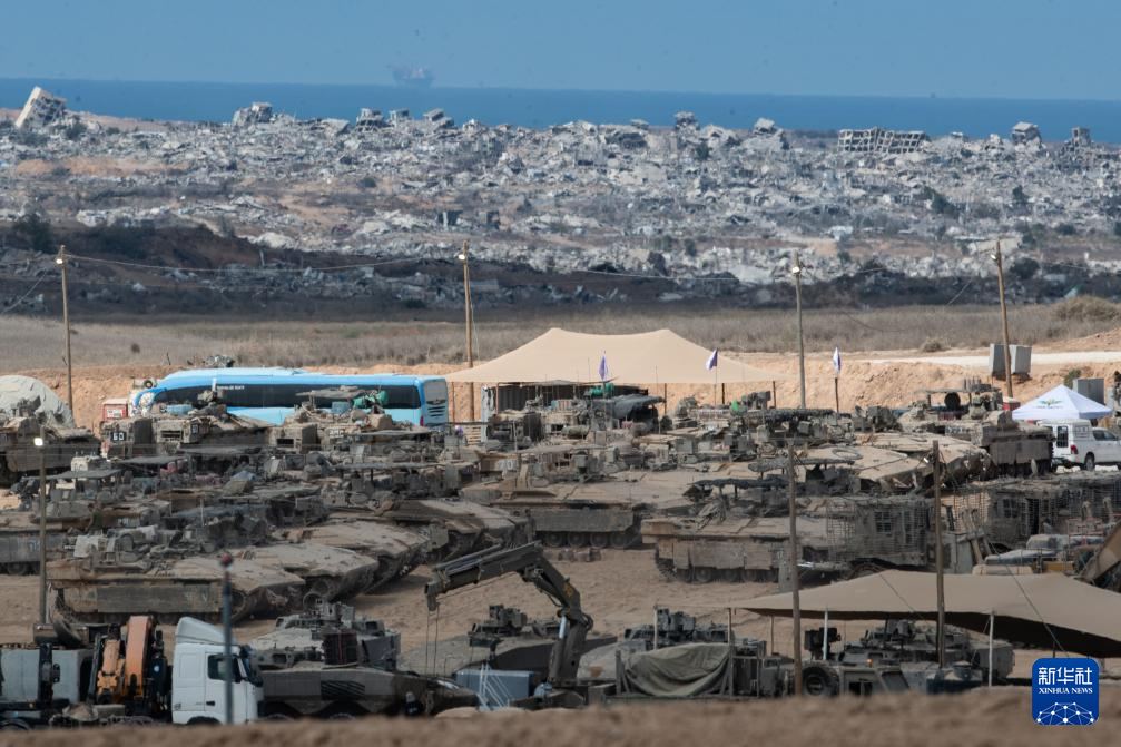 這是10月10日停火生效后拍攝的位于加沙邊境的以軍部隊。新華社記者 陳君清 攝