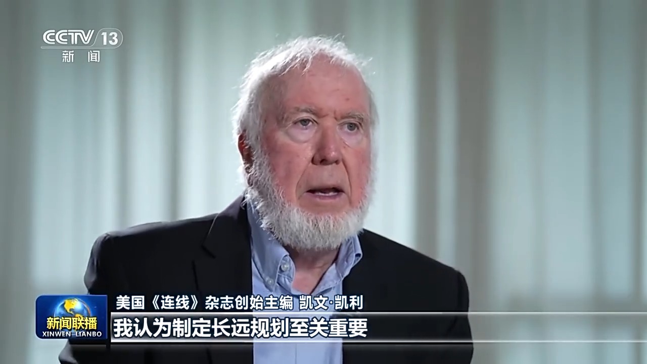 美國《連線》雜志創(chuàng)始主編 凱文·凱利:我認為制定長遠規(guī)劃至關重要,如果只顧眼前,根本不可能成就偉大事業(yè)。因此我很贊同中國進行五年規(guī)劃,眼光越高遠,心態(tài)就越積極。中國在人工智能、生物科技等領域不斷發(fā)展進步,正引領全球綠色轉(zhuǎn)型,這對中國、對世界來說都是好事。