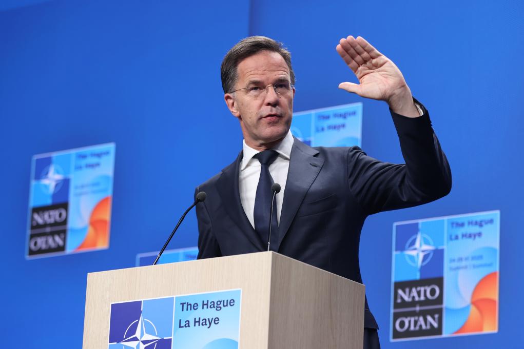 6月25日,在荷蘭海牙,北約秘書長呂特在北約峰會期間出席新聞發(fā)布會。新華社記者趙丁喆攝