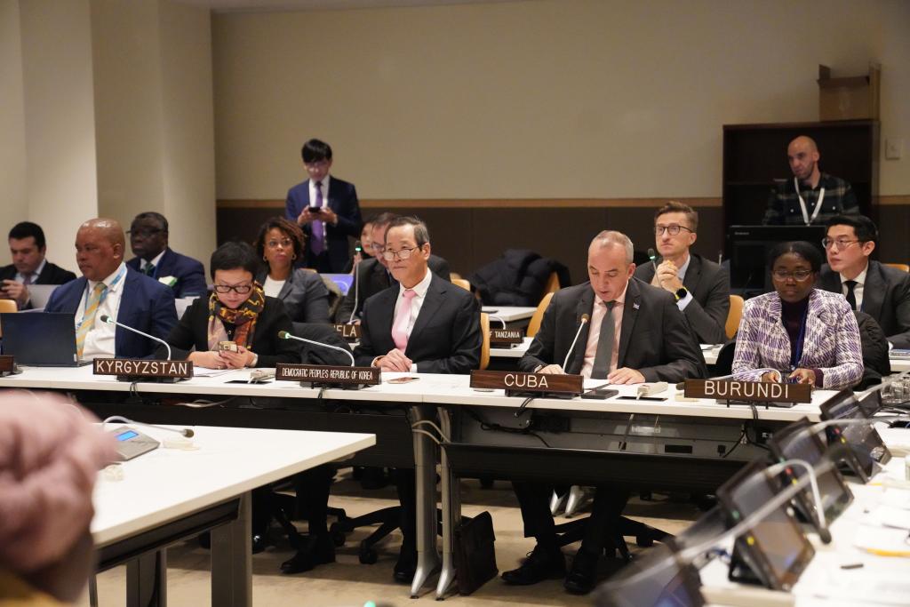 12月9日,在紐約聯(lián)合國總部,創(chuàng)始成員國的代表出席“全球治理之友小組”啟動會議。新華社記者 張鳳國 攝
