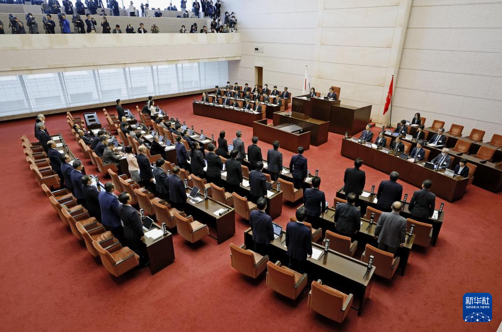 這是12月22日在日本新潟縣拍攝的縣議會(huì)現(xiàn)場。新華社/共同社