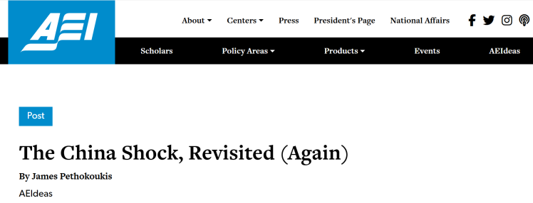 當(dāng)前全球經(jīng)濟(jì)復(fù)蘇乏力、貿(mào)易保護(hù)主義抬頭,部分西方政客與媒體頻繁炒作“中國(guó)沖擊論”,企圖將損人不利己的“關(guān)稅大棒”合理化。美國(guó)知名保守派智庫(kù)美國(guó)企業(yè)公共政策研究所(American Enterprise Institute for Public Policy Research)高級(jí)研究員詹姆斯·佩索科基斯(James Pethokoukis)近日發(fā)文稱(chēng),基于大量數(shù)據(jù)分析與案例研究,“中國(guó)沖擊論”站不住腳,中國(guó)融入全球經(jīng)濟(jì)促進(jìn)了美國(guó)經(jīng)濟(jì)增長(zhǎng),實(shí)際上顯著提高了美國(guó)人民的生活品質(zhì)。