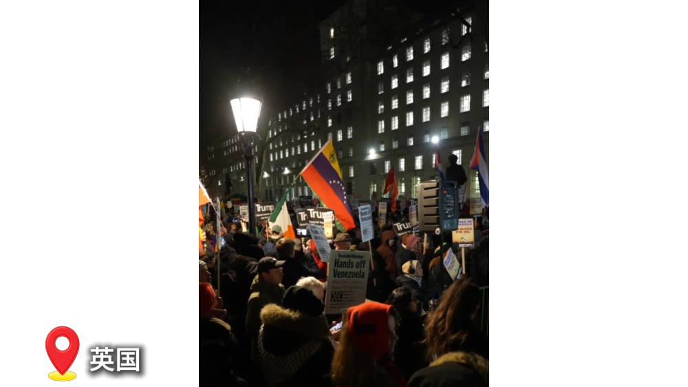 當(dāng)?shù)貢r(shí)間5日晚,大量民眾聚集在英國首相官邸唐寧街10號,抗議美國對委內(nèi)瑞拉的軍事打擊,要求英國首相斯塔默譴責(zé)美方行動。
