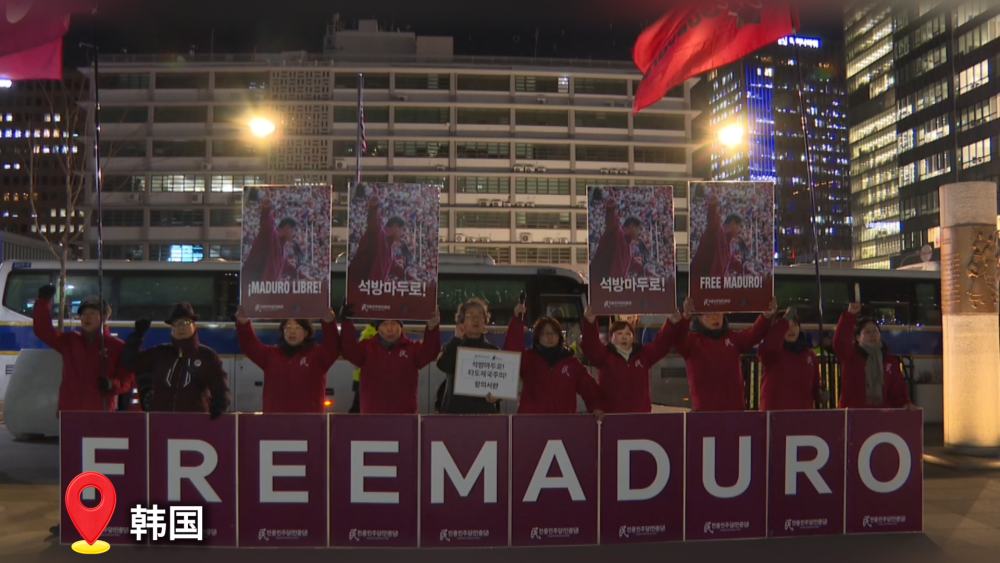 韓國民眾民主黨5日在美國駐韓國大使館前舉行黨內(nèi)演講會,并計(jì)劃向美國大使館遞交抗議信,要求美方釋放委內(nèi)瑞拉總統(tǒng)馬杜羅。