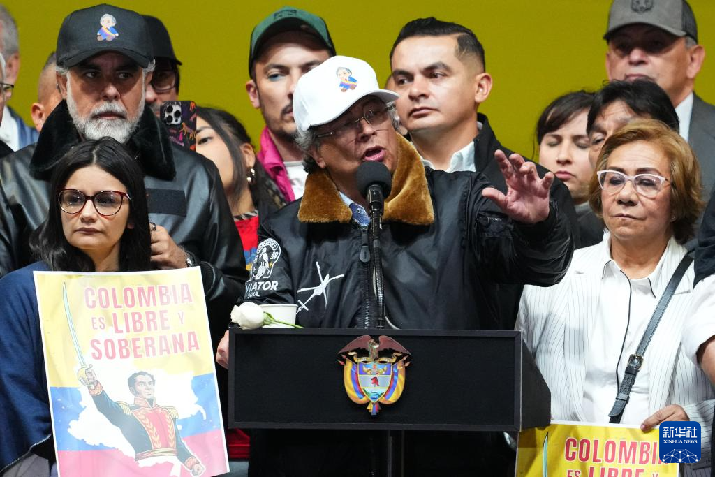 1月7日,在哥倫比亞首都波哥大,哥倫比亞總統(tǒng)佩特羅在玻利瓦爾廣場舉行的示威游行活動中發(fā)表講話。新華社發(fā)(安德烈斯·莫雷諾攝)
