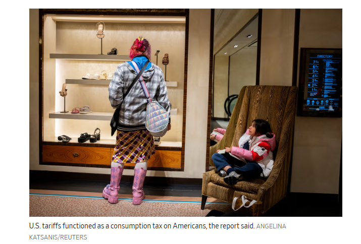 報(bào)告稱,美國關(guān)稅實(shí)際上相當(dāng)于對美國民眾征收消費(fèi)稅。路透社報(bào)道截圖