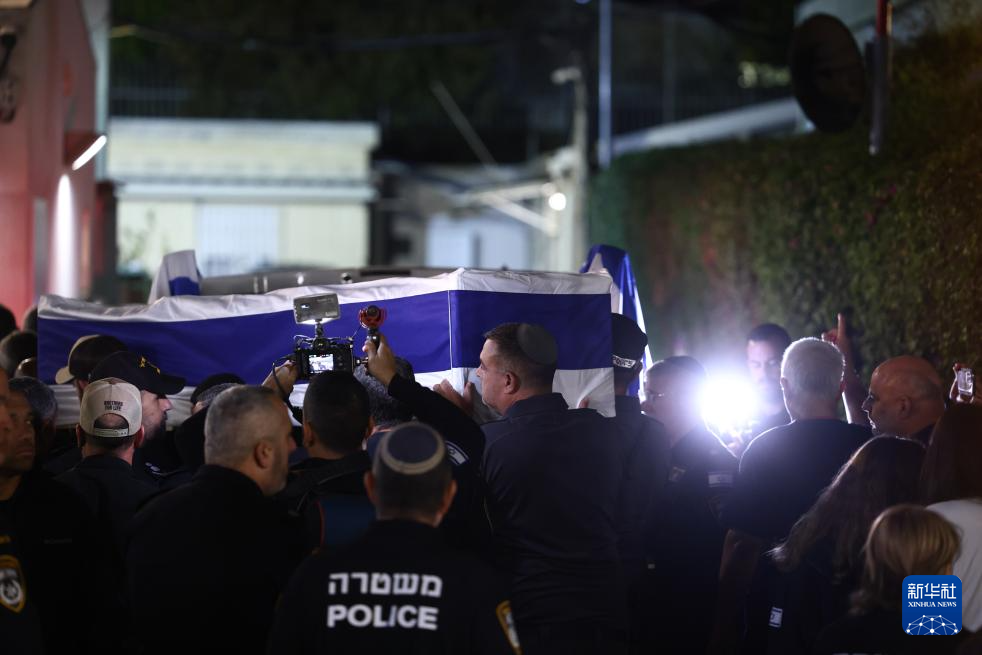 1月26日,以色列被扣押人員拉恩·格維利的棺槨被送至以色列特拉維夫一所法醫(yī)中心。新華社發(fā)(賈馬爾·阿瓦德攝)