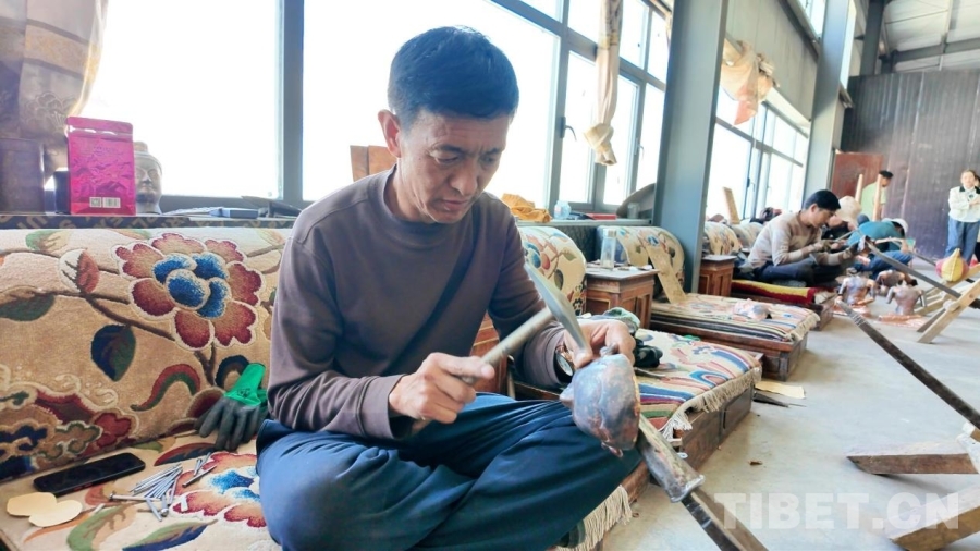 走進(jìn)南木林縣艾瑪鄉(xiāng)孜東雪村銅器加工廠,叮當(dāng)作響的錘擊聲不絕于耳——國(guó)家級(jí)非遺傳承人列旦桑布正帶領(lǐng)年輕學(xué)徒接力這門古老手藝。列旦桑布自幼受家庭熏陶癡迷銅器鍛造,師從外祖父、第五代傳承人贊拉多吉,24歲便已熟練掌握從制模、雕刻到打磨、鎏金等十余道全流程工藝,至今已培養(yǎng)出28名徒弟。