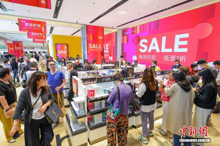圖為元旦假期,cdf??趪?guó)際免稅城迎來(lái)購(gòu)物熱潮,眾多游客前來(lái)選購(gòu)心儀商品?!≈行戮W(wǎng)記者 駱云飛 攝