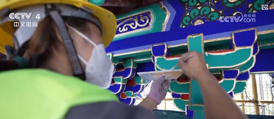 如今的北京中軸線構(gòu)建起了現(xiàn)代都市與歷史空間巧妙融合的城市景觀。北京中軸線上的前門五牌樓曾因常年風(fēng)吹日曬,導(dǎo)致油飾層開(kāi)裂、失去華彩。2022年,古建油飾彩畫(huà)專家堅(jiān)持古法彩繪,對(duì)前門五牌樓進(jìn)行了翻新,令牌樓呈現(xiàn)出恢弘大氣的視覺(jué)效果。作為世界遺產(chǎn)的北京中軸線同時(shí)也是百姓日常工作生活的場(chǎng)景,這讓北京中軸線成為了“活遺產(chǎn)”。而在北京中軸線的最南端,重新復(fù)建的永定門如今已經(jīng)成為了百姓休閑和游客打卡的好去處。