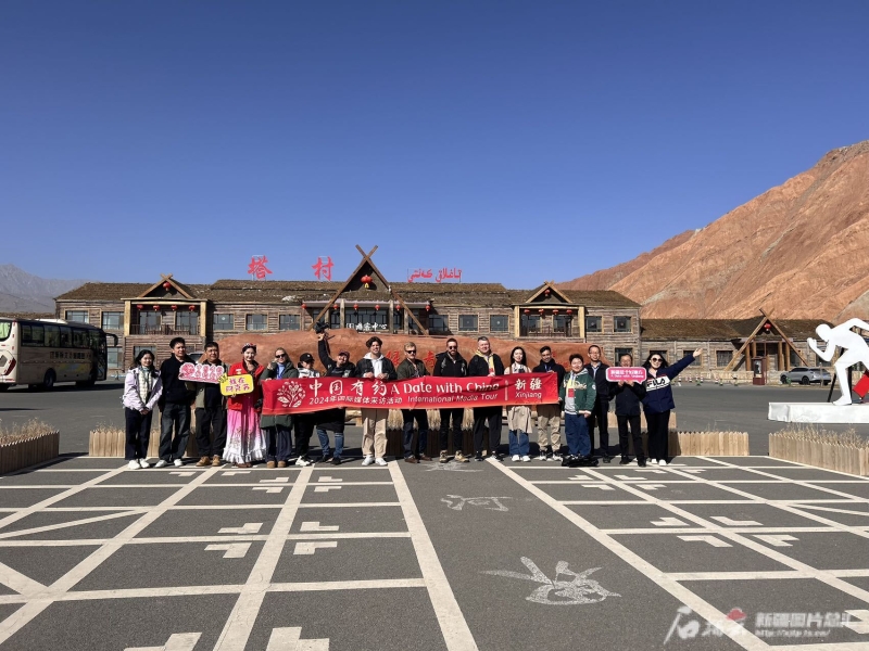 “中國有約·相約新疆”2024國際媒體采訪活動(dòng)來到天山托木爾景區(qū)·塔村。石榴云/新疆日?qǐng)?bào) 記者張小宓攝